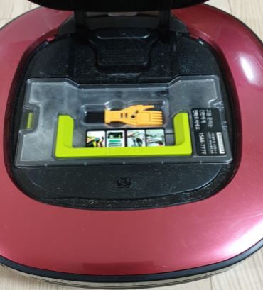 뚜껑을 열면 먼지통이 있습니다. 로봇청소기라 그런지 요즘 나오는 무선 청소기들에 비해 먼지통 크기가 조금 작긴한데요. 구입 당시엔 무선청소기가 메인이고 로봇청소기를 서브로 생각하며 구입했기 때문에 문제가 되진 않았습니다. 다만 지금 시점에서 아쉬운 점은 청소가 끝나고 먼지통을 비울때 먼지통을 열어야 하는데 열 때 깔끔하게 먼지를 버리기가 쉽지 않다는 점입니다. 실컷 청소를 하고 먼지 버리면서 먼지를 오히려 더 많이 마시는 불상사가 생길지도.. ㅠ 그 당시엔 이 것보다 더 나은게 없었으니 봐주자구요.