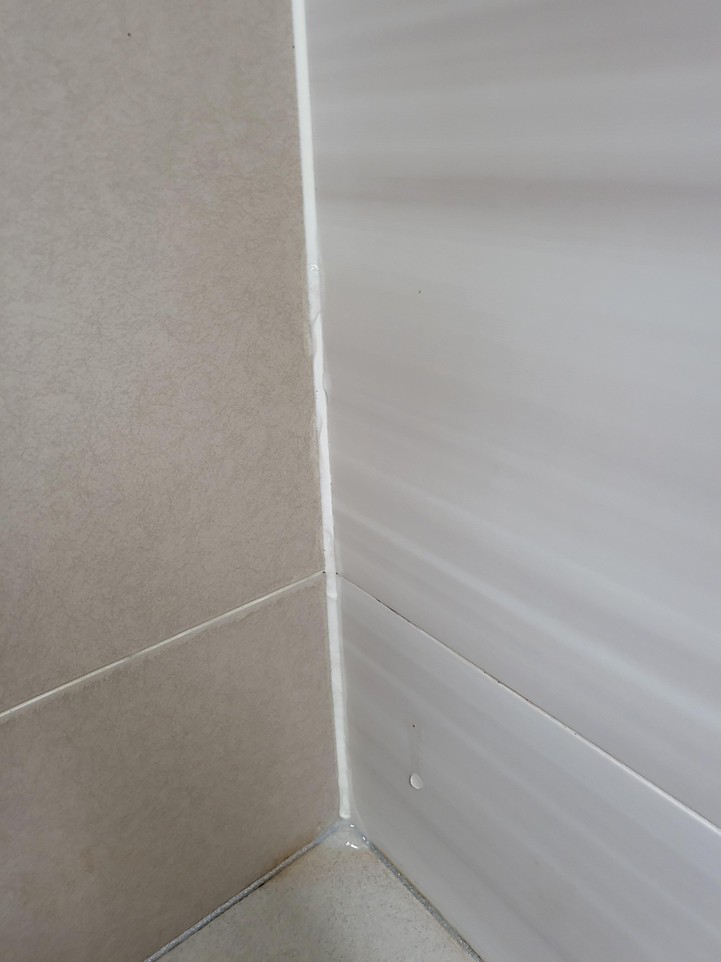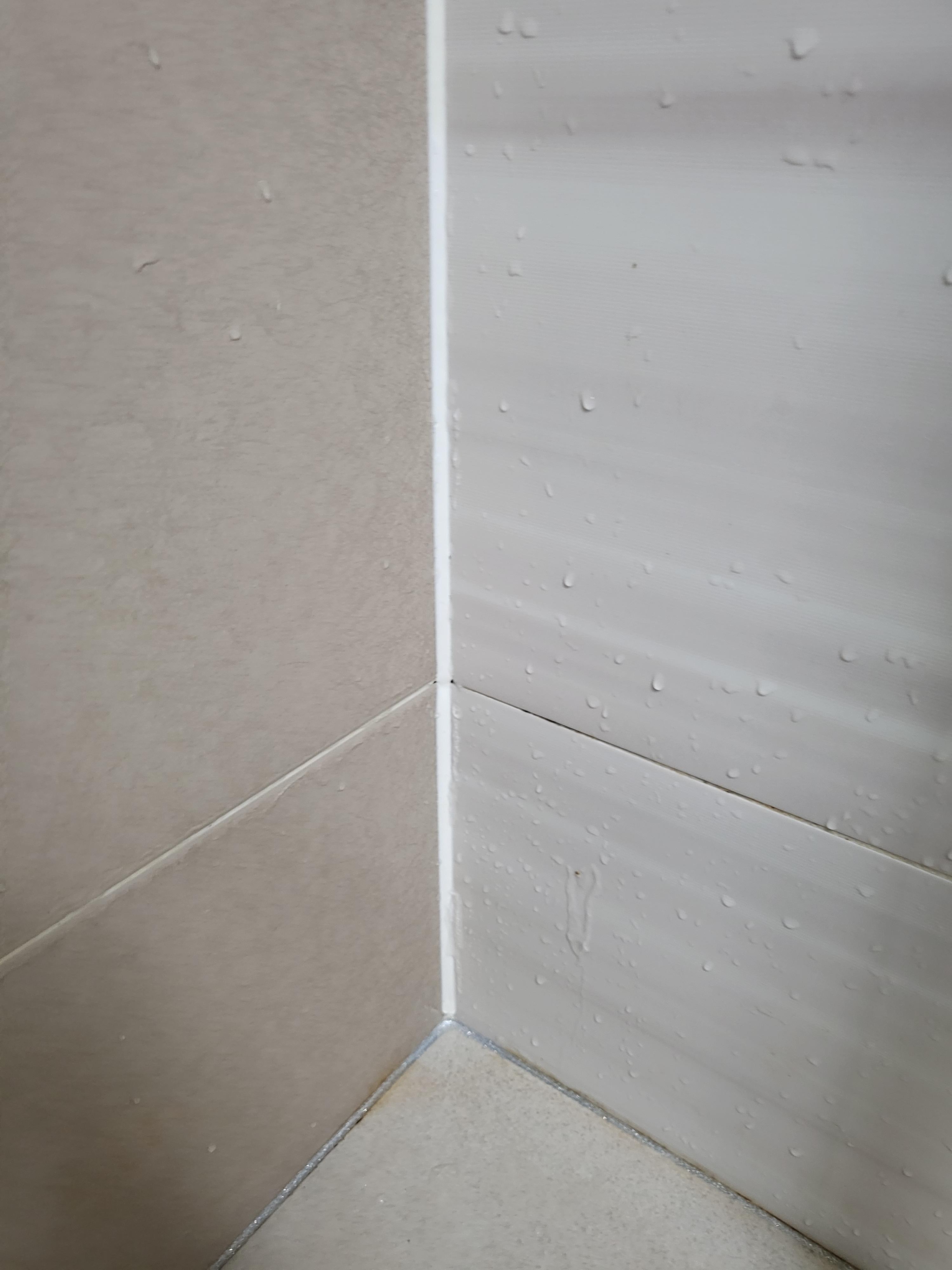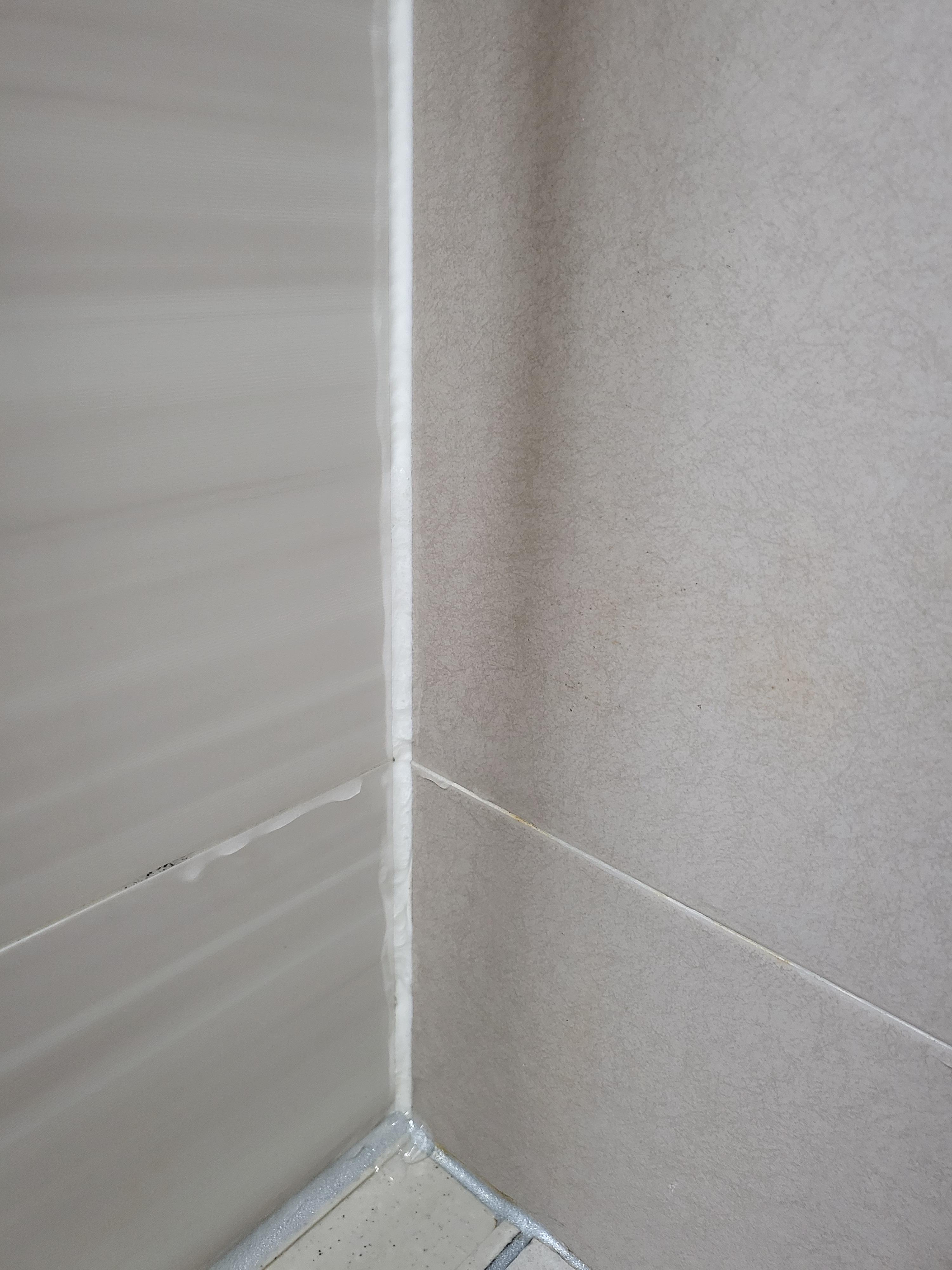 여기서 일단 사죄를 말씀을 먼저 드려야겠습니다. 제가 블로그를 시작한지 얼마 안되서 사진 찍는 습관이 안생겨서 곰팡이 제거전 사진을 미리 못 찍어놨네요 ㅠㅠ 위의 사진은 곰팡이 제거제 도포 후 2시간쯤 있다가 사진이 깜빡한 것을 깨닫고 후다닥 찍으려고 했더니 이미 상당 부분 제거가 진행된 상황이었더라구요. 글로나마 곰팡이 상태를 설명을 하자면 벽과 벽이 만나는 부분의 실리콘에 검정색 점 같은 곰팡이들이 깊게 박혀 있어 제거제 되지 않는 상황이었습니다.